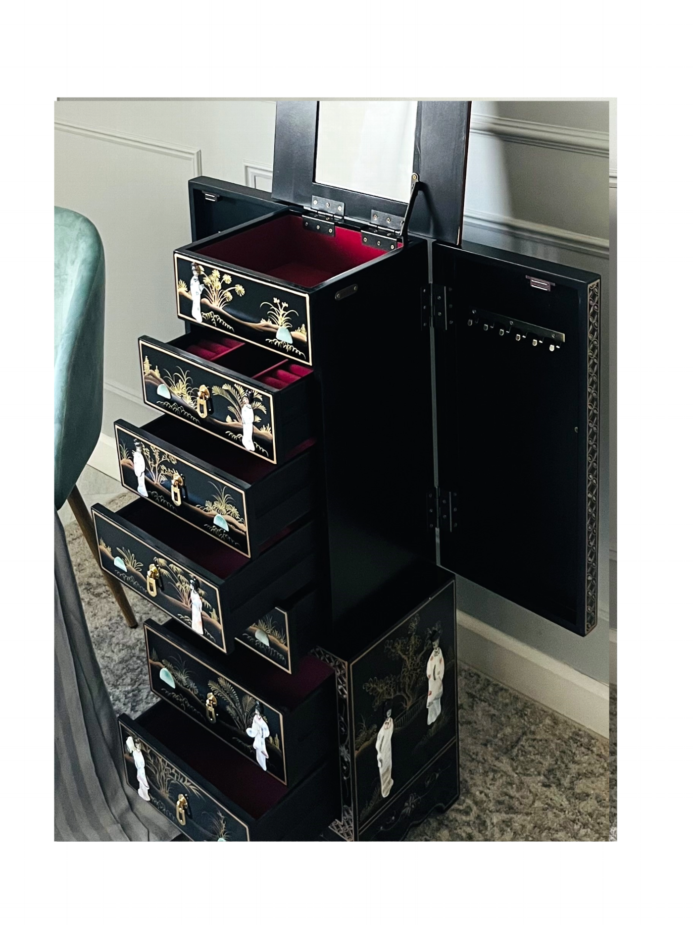- Having established this, carved mother of pearl sculptures are then carefully set onto the surface to compliment the chosen theme and hand-painted scenes.